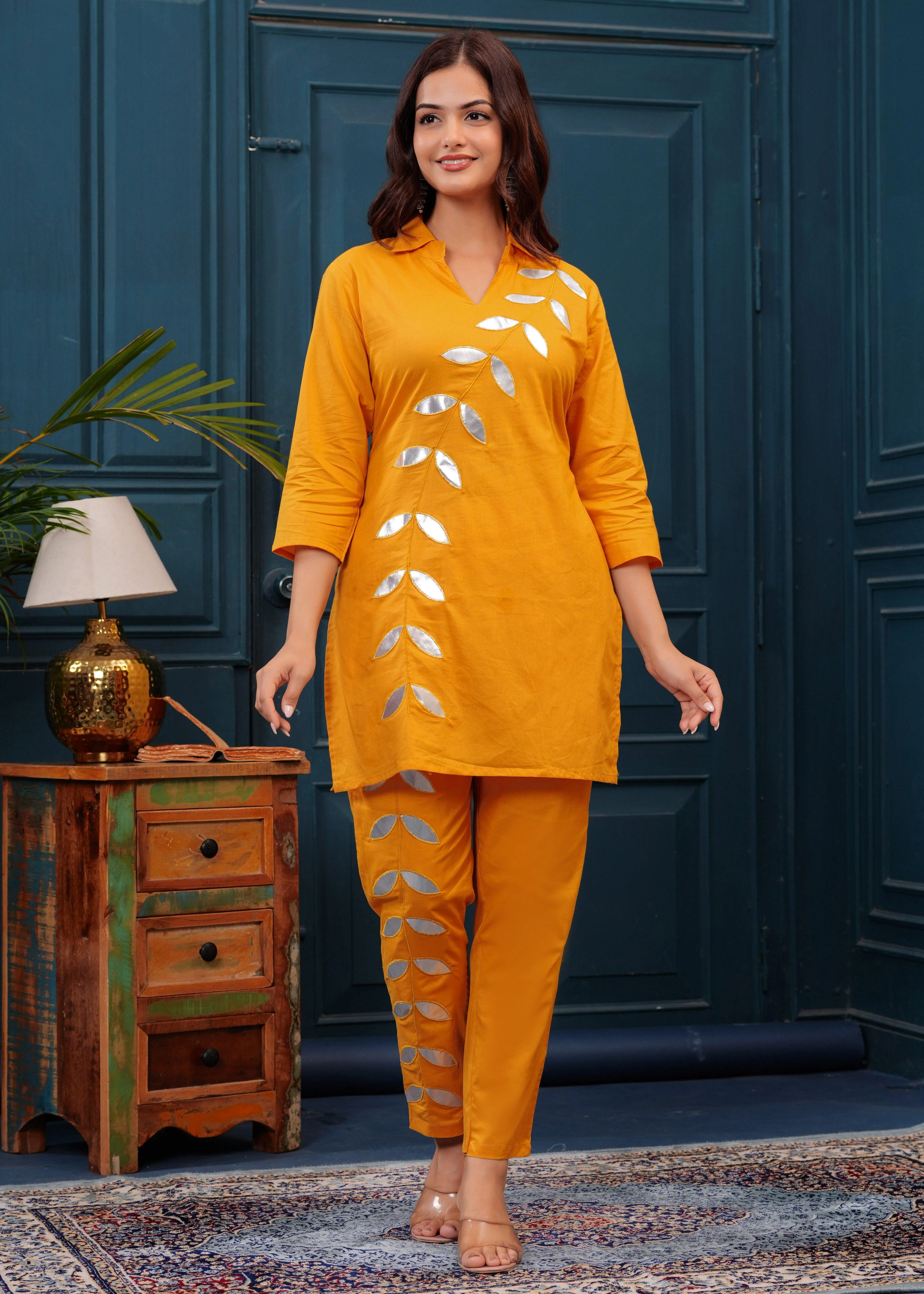 Mustard Embellished Cotton Co-Ord Set