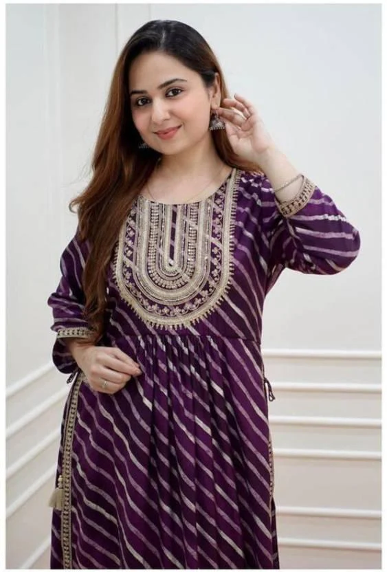 -70%Embroidered Leheriya Printed Kurta and Pant Set—